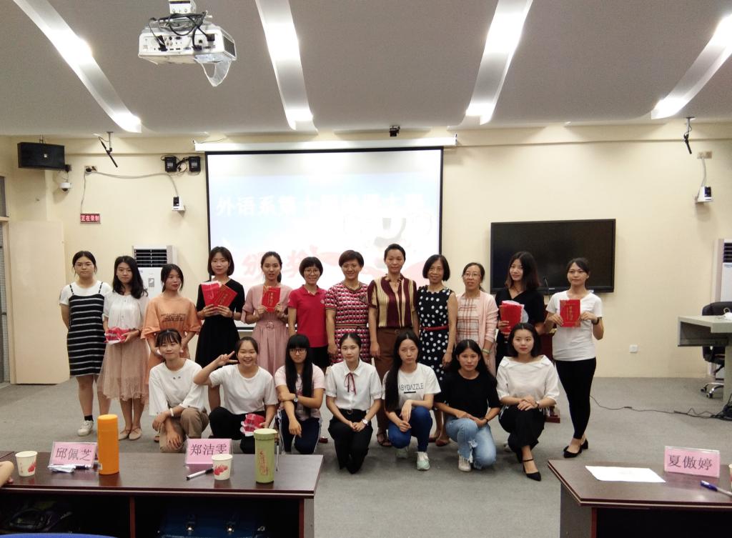 6月7日中午,外语系第十届讲课大赛决赛在教学楼AT22多功能活动室举行。外语系郑洁雯副主任、高健萍老师、郭敏老师、邱佩芝老师、佘烁娜老师、夏傲婷老师、黄桂红老师、查爱霞老师参加并担任本次大赛的评委。