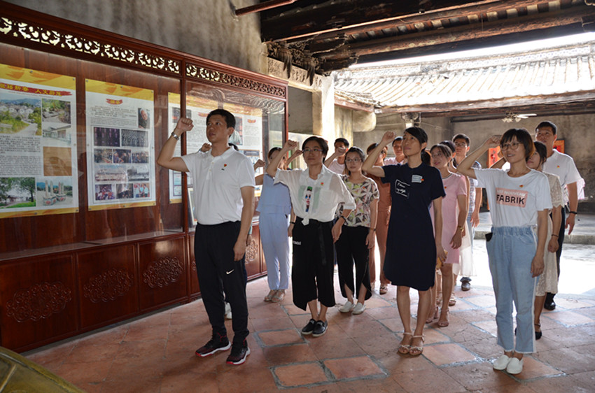 在黄旭华同志故居,全体党员面对党旗,在领誓人陈磊同志的带领下,举起右拳,庄严重温入党誓词。随后,教师党员、学生入党积极分子和团员参观黄旭华同志的故居旧址,详细观看了关于黄旭华同志的个人事迹简介和照片,深刻体会到黄旭华同志不畏艰险、献身核潜艇事业以及把生死置之度外的高尚革命情操,受到了一次深刻的党性教育。党员师生还通过开展公益健步走及线上捐步,通过运动的方式,为扶贫助力,将一个个脚步转化成一份份公益的力量。