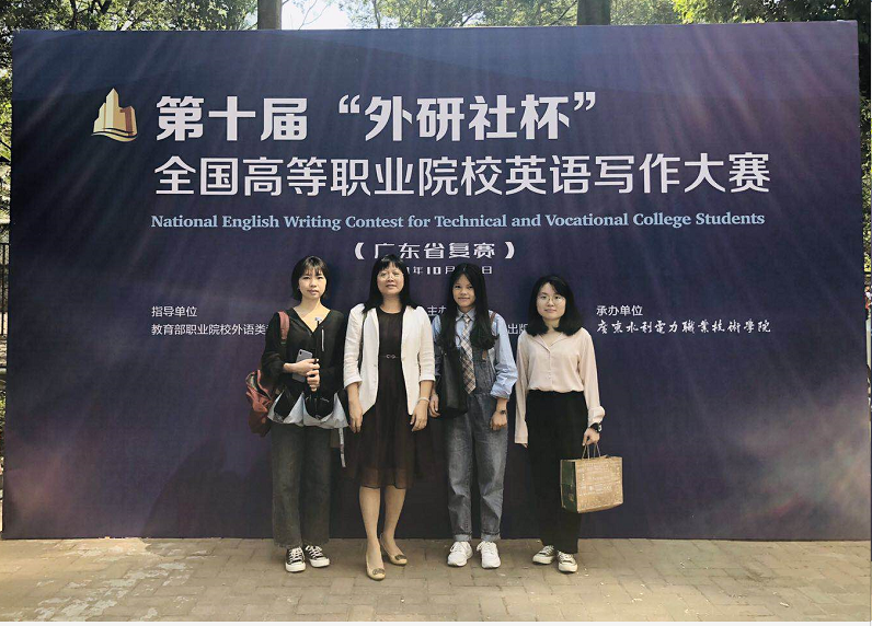 10月22日,第十届“外研社杯”全国高等职业院校英语写作大赛广东省复赛在广州水利电力职业技术学院成功举行,大赛分英语专业组和公共英语组举行。我院共选拔3名选手参加,均获得佳绩:五年一贯制英语教育151魏冰敏获专业组三等奖、商检技术181张悦和工商企业管理181邱琳楚获公共组二等奖和三等奖。