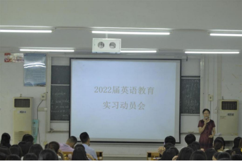 为确保毕业实习工作顺利有序开展,引导学生做好实习前的各项准备,2021年6月7日中午,我系于教学楼BT32召开了2022届英语教育专业学生实习动员大会。外语系负责人邱瑞君副主任、外语系党总支书记巫会朋书记、英教教研室主任陈金杰老师、陈奕曼老师等实习指导老师与全体2022届英语教育专业学生参加了本次会议。会议由辅导员卢梦凡老师主持。