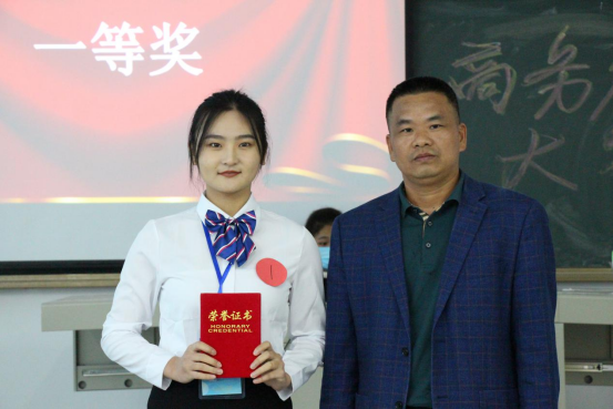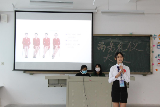 大赛在11月上旬全面启动,分预赛和决赛两个阶段进行。选手们积极备战,精心准备。经过紧张激烈的角逐,共有11位选手进入决赛。决赛包括:个人风采展示,商务礼仪主题演讲,商务知识综合考核,商务情景模拟表演环节。比赛现场,11位选手以流利的英语口语,精彩的舞台表现赢得了现场观众一阵阵热烈的掌声。最终,一号选手郑若彤凭借得体大方的仪容仪态,流利的英语口头表达以及扎实的专业基本功,拔得比赛头筹。