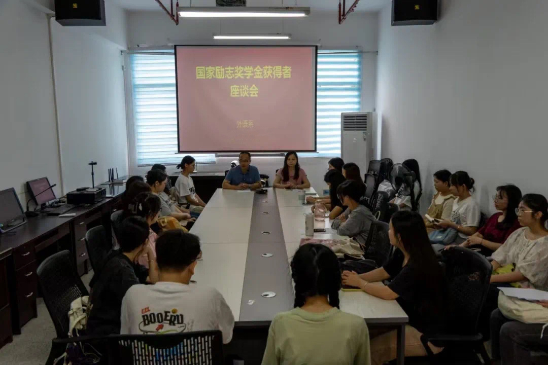 为贯彻落实国家资助政策,引导家庭经济困难学生勇立鸿鹄之志,常怀感恩之心,近日,我系在教研楼1104组织召开2023-2024学年国家励志奖学金获奖学生代表座谈会。外语系党总支书记陈志钦、获奖学生代表出席会议,卢梦凡老师主持会议。