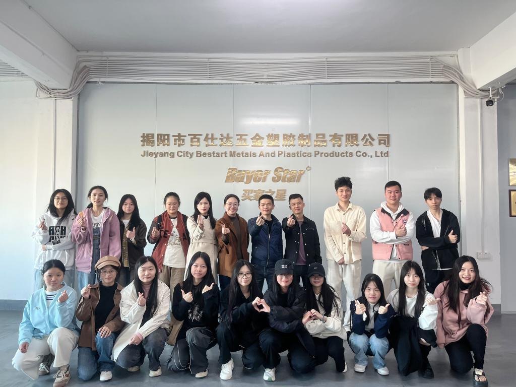 在百仕达五金塑胶制品有限公司,学生们首先参观公司生产车间,了解五金产品的制造过程。公司外贸部业务经理林锐江为同学们详细介绍了公司的部门设置、主要产品、海外市场、客户群体等。同时结合当前国际贸易背景,就五金产品的生产流程、质量控制等关键技术点,为同学们进行了系统介绍与实操讲解,进一步加深同学们对专业知识的理解与掌握。