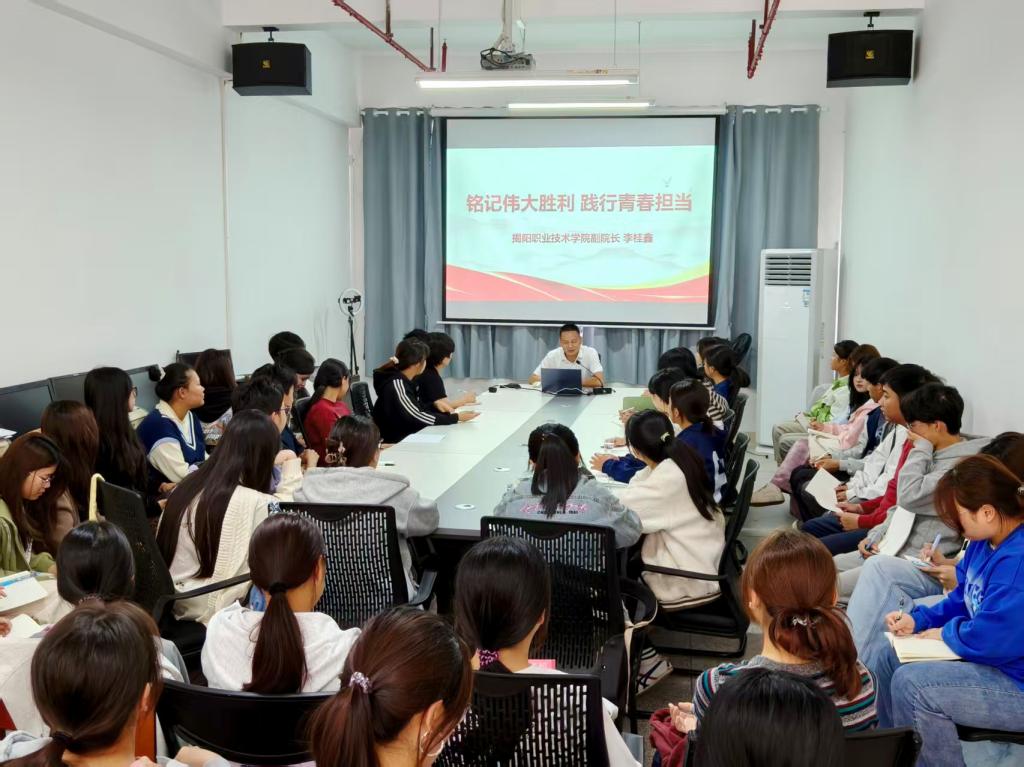 10月23日下午,学校党委委员、副院长李桂鑫到外语系,为2025级小学英语教育(专本协同)、商务英语专业学生讲授了一堂题为“铭记伟大胜利 践行青春担当”的思政课。