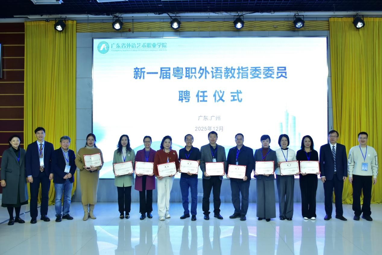 会议涵盖领导致辞、教指委工作报告、主旨报告、专题报告、实训基地参观、教学示范说课、院校经验交流以及行业产教融合资源对接等多个环节。广东省外语艺术职业学院副校长、粤职外语教指委主任委员袁洪教授致开幕辞并作工作报告,强调了新时期职教外语的使命与担当。会上举行了新一届粤职外语教指委委员聘任仪式,我系邱瑞君主任获聘为新一届委员。