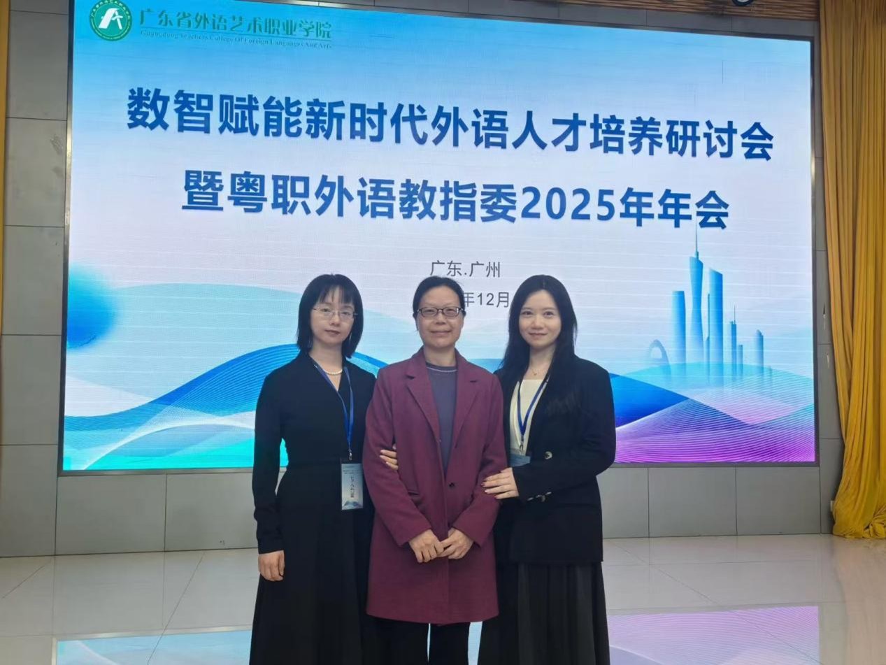 为深入探索数智时代职业外语教育的发展路径,推动外语教学改革与人才培养模式创新,2025年12月14日,外语系主任邱瑞君、小学英语教育教研室陈雯、柳琼青老师一行赴广州参加“数智赋能新时代外语人才培养研讨会暨粤职外语教指委2025年年会”。本次会议由广东省职业学校外语类专业教学指导委员会主办,广东省外语艺术职业学院承办,汇聚了省内外职业院校外语教育专家、学者、行业企业代表,共同研讨外语教育高质量发展的新方向、新动能。