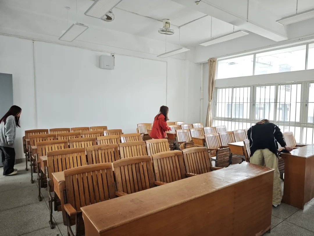 3月6日,外语系学子化身“校园美容师”,对教学楼B栋2-3楼12间教室、教研楼11楼4间实训室开展全方位深度清洁。活动中,同学们分工协作、干劲十足:教室内,细致擦拭黑板、门窗、地面,整理讲台,做到不留死角;实训区域内,擦拭电脑设备,规范归位实训器材,重点清理角落、设备底部等易忽视区域,让校园环境焕然一新。