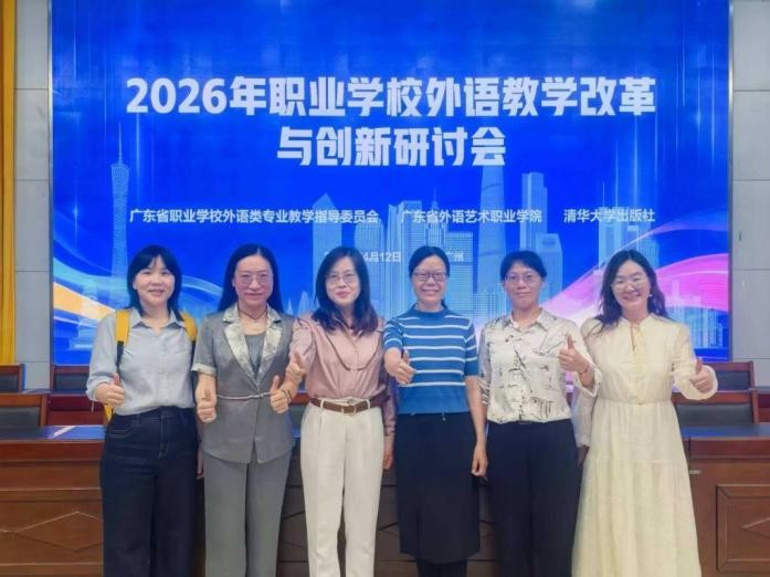 为深入贯彻国家职业教育改革精神,积极响应“推动现代职业教育高质量发展”的号召,进一步深化职业学校外语教学改革,4月12日,我系邱瑞君主任、林畅、杨茹、宋小娟、黄小春、江婉丽老师等一行应邀赴广东省外语艺术职业学院参加由广东省职业学校外语类专业教学指导委员会主办的“2026年职业学校外语教学改革与创新研讨会”。