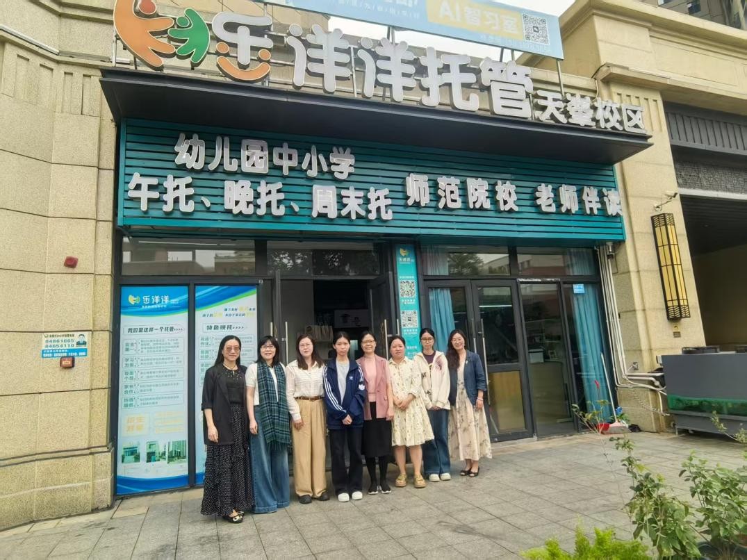两家机构负责人对调研组一行表示热烈欢迎,并分别介绍了各自的运营模式与人才需求。乐洋洋托管(天峯校区)专注于课后服务与学生行为习惯养成,杜老师素拓中心则在素质教育拓展课程开发方面特色鲜明。目前,外语系有数名学生在两家机构顶岗实习,分别从事课后托管辅导及素质拓展课程助教等工作,其扎实的专业基础与认真的工作态度获得机构高度认可。调研期间,邱瑞君主任一行亲切看望了实习学生,详细了解其工作与生活情况,并勉励他们珍惜实践机会、提升教学技能。